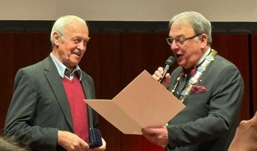 06.01.2024 - Mit dem Bürgerempfang am Dreikönigstag, Samstag, 6. Januar, war es nach dreijähriger Corona-Pause endlich wieder so weit. Beim Reutlinger Bürgerempfang in der Stadthalle zeichnete Oberbürgermeister Thomas Keck vor rund 1000 Gästen gleich vier engagierte Reutlinger mit der Verdienstmedaille aus, die sich »in herausragender Weise um unsere Stadtgesellschaft verdient gemacht haben«. Unter den Ausgezeichneten befand sich auch Herr Helmut Kober, der seit vielen Jahren TKIV-Mitglied und unser Freund ist. Neben Helmut Kober wurden auch Ulrike Wolf, stellvertretend für ihren Vater Prof. Roland Wolf, Prof. Werner Grüninger und Galina Lerner mit der Verdienstmedaille geehrt.